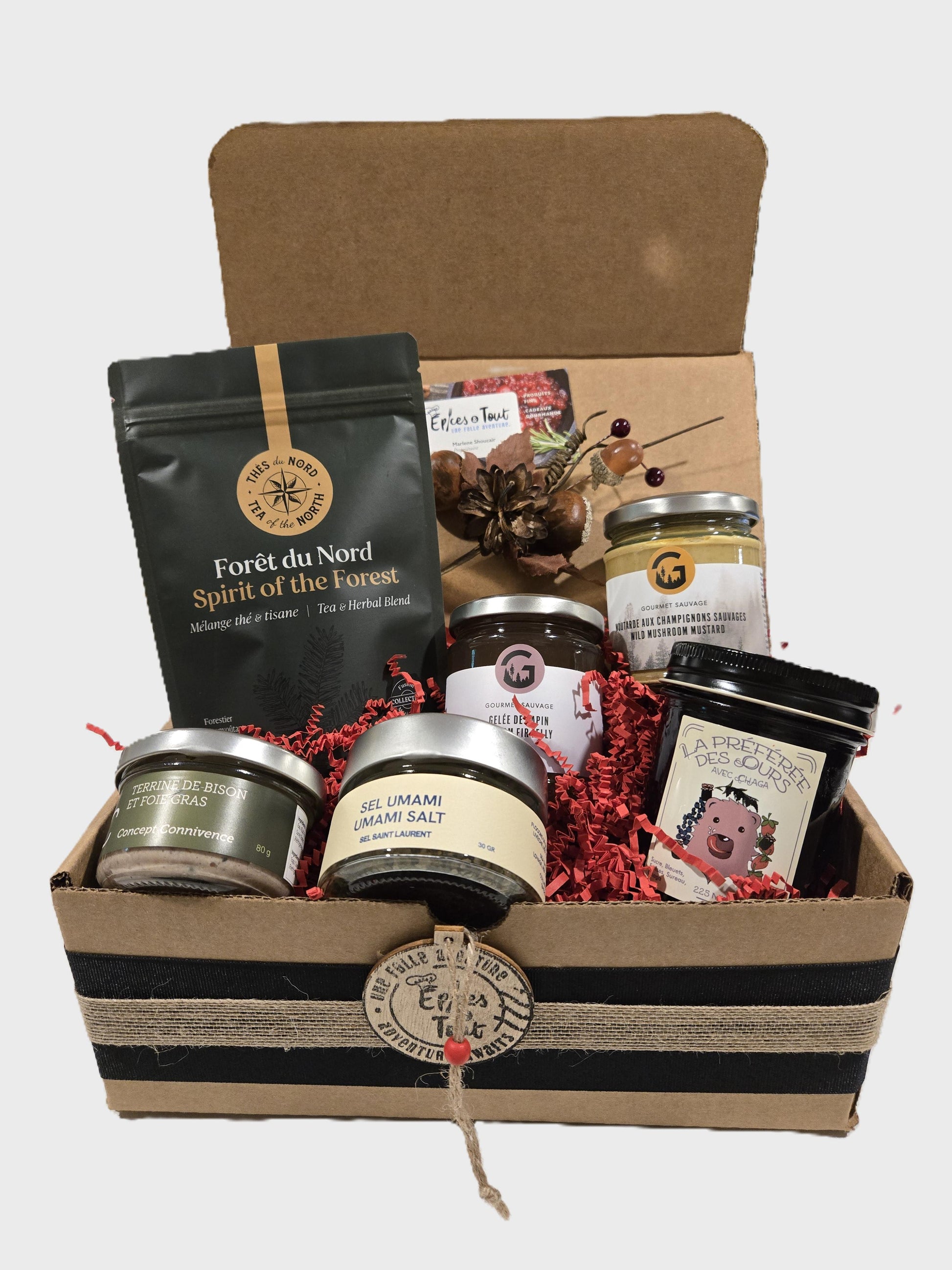 Ce coffret cadeau fait rayonner ce qui se produit lorsque le terroir unique du Québec rencontre le savoir-faire des artisans culinaires locaux pour créer des mets, des infusions et des condiments exquis.